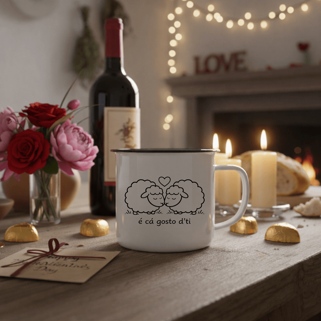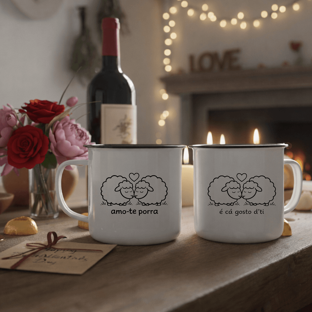 Púcaro esmaltado retro com expressões engraçadas do Alentejo, perfeito para trazer humor e tradição ao dia-a-dia. Ideal para oferecer no Dia dos Namorados, com frases como “Amo-te porra” e “É cá gosto d’ti”.
